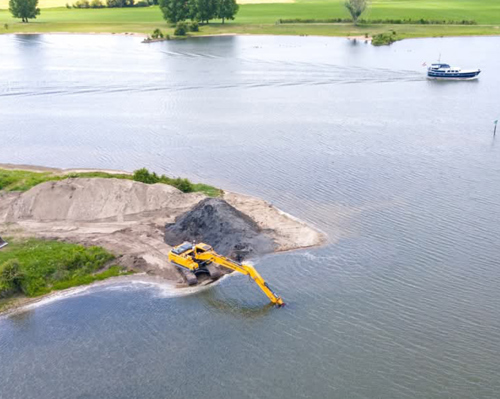 Un quai de déchargement est une installation spécialement aménagée où les navires peuvent accoster en toute sécurité pour charger et décharger des marchandises. Pour De Rijswaard, cela signifie que des navires apportent l’argile fluviale et transportent nos briques vers les clients. La construction d’un quai est un investissement à la fois dans l’efficacité et la durabilité. Le transport par voie d’eau est utilisé depuis des siècles comme un moyen fiable d’acheminer des marchandises, et il offre encore aujourd’hui de grands avantages. Il consomme moins d’énergie par tonne-kilomètre, réduit la pression sur le réseau routier et est beaucoup moins sensible aux embouteillages et aux restrictions de circulation. Avec un deuxième quai, nous investissons dans l’avenir et préparons notre usine à mieux répondre à la demande croissante et aux ambitions du secteur de la construction.