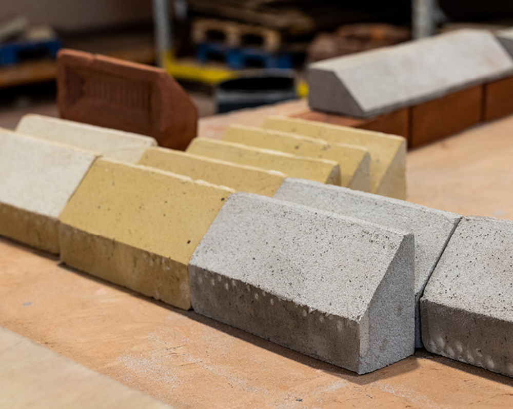 La briqueterie de Rijswaard fournit ces briques spéciales dans le cadre du projet, en adéquation avec le type de brique choisi et son application dans la conception. Cette démarche s’effectue en collaboration avec un partenaire spécialisé fixe, garantissant ainsi qualité et cohérence.